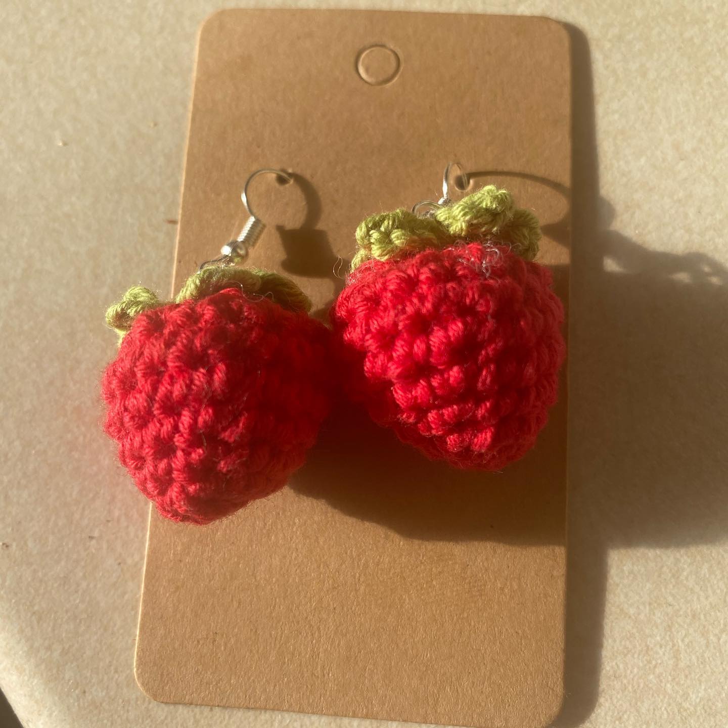 Beautiful handmade crochet strawberry earrings. Giving you a dopamine hit to your jewellery collection.