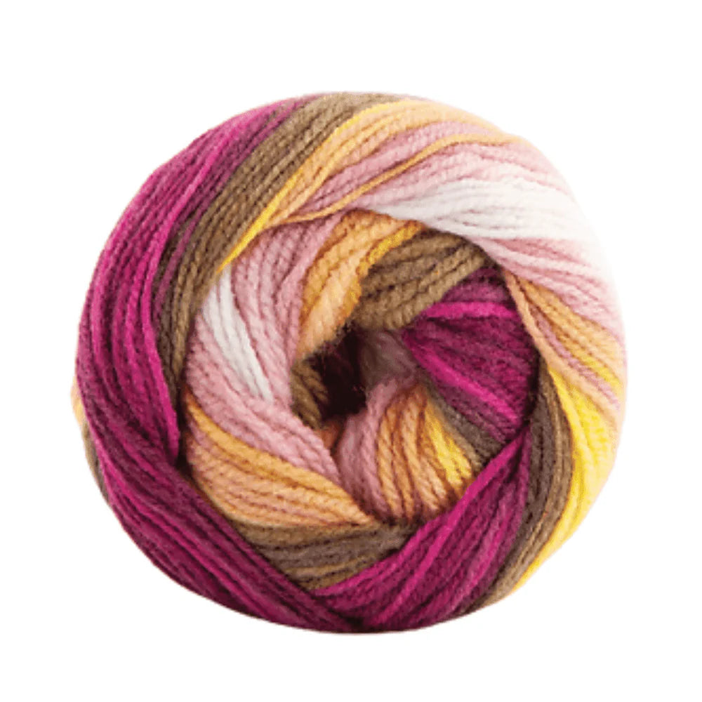 Colour Rush DK is a beautiful contrasting premium acrylic yarn that is ideal for accessories, homewares and eye-catching clothing. Creating a stunning defined stripe effect when knitted up, this yarn is versatile and fully machine washable. Colour Rush is your perfect self-striping yarn that comes in an array of bright and neutral colourways, giving a rush of colour to your project!